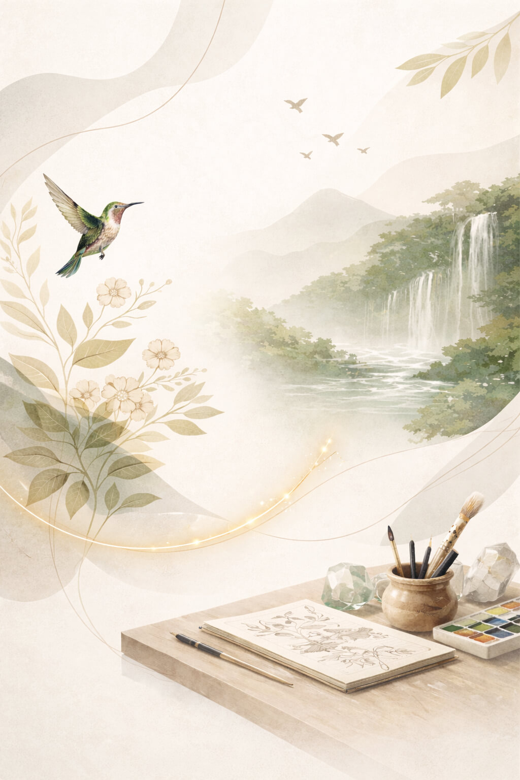 Aqui organizo o invisível. Investigo formas, cores, arquétipos, ritmo visual e coerência simbólica. Estruturo o sistema antes da imagem final existir. A identidade começa como arquitetura perceptiva.