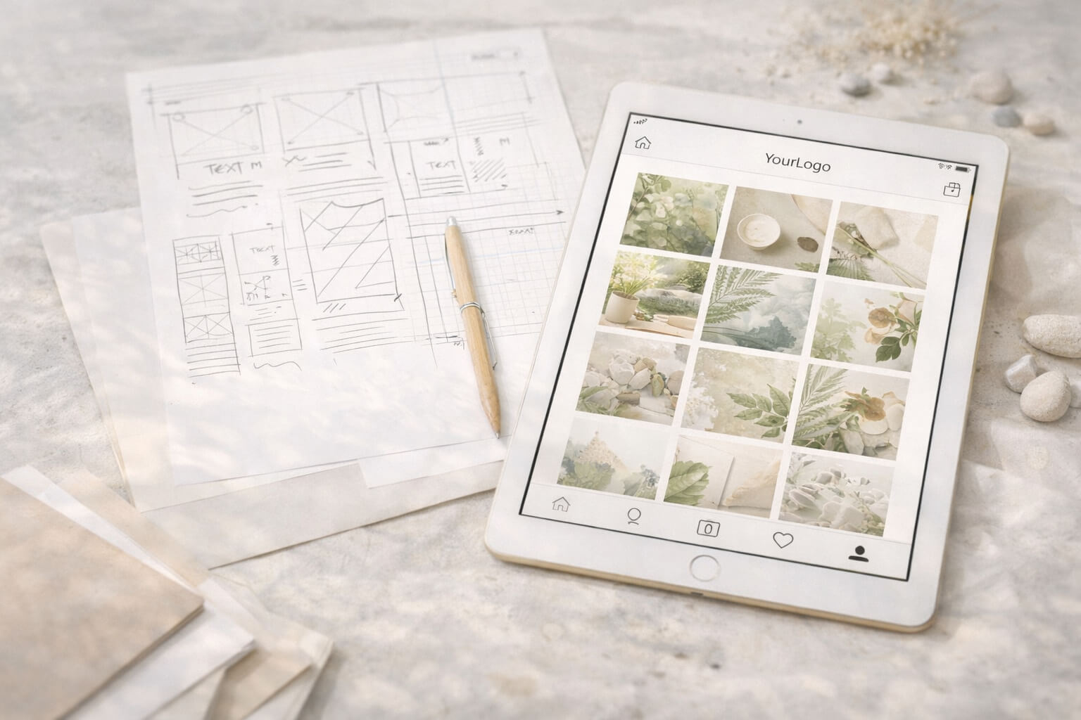 Toda marca nasce em um cenário específico. Antes de desenhar, observo. Analiso cultura, propósito, público, ambiente competitivo e linguagem implícita. A observação profunda evita soluções genéricas e cria direção consciente.